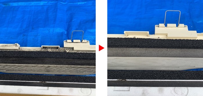 お客様もエアコン内部の汚れに驚いていました。綺麗にクリーニングされたエアコンに喜んで頂きました。